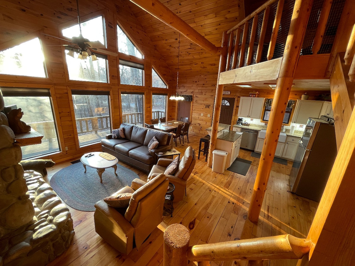 🔥”New 2024!! Buffalo Springs Luxury Log Cabin” located on 70 acres! Only 4 properties, including ours. You will see many deer, geese, ducks, and horses on & around the property. Unique double-cascading rock waterfall into the hot tub, pool table, creek, rocked fire pit area, arcade games, outdoor games, free use of our kayaks & much more! Plenty of parking with a circle drive.🔥