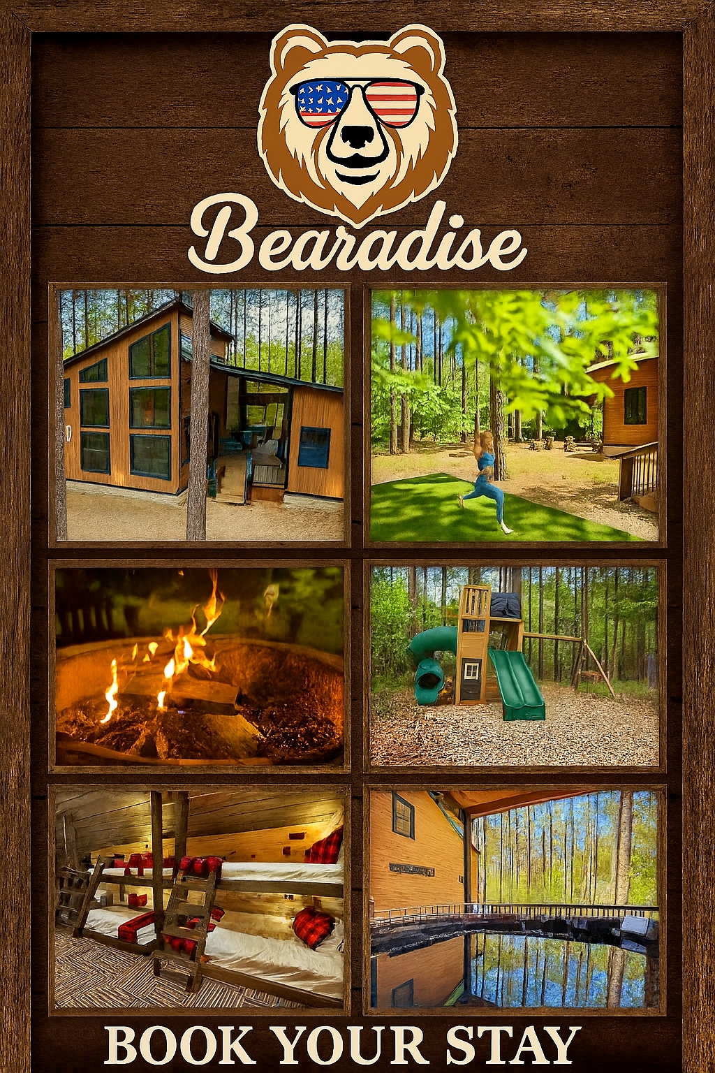 ━━━━━━━━━━━━━━━━━━━━━━ ✦ The TreeHaus ✦ ━━━━━━━━━━━━━━━━━━━━━━ • Perched high above the forest canopy with stunning views • 2 king suites + 1 king bedroom + bunk room (2 queen + 2 full) • 8-person hot tub nestled in the treetops • Fire pit circle + cozy fireplace + multi-level outdoor decks • Set on 2+ private, wooded acres • Well-equipped kitchen + BBQ deck for forest dining • Pet-friendly treehouse adventure • 5 min to river, 10 min to Beavers Bend adventures