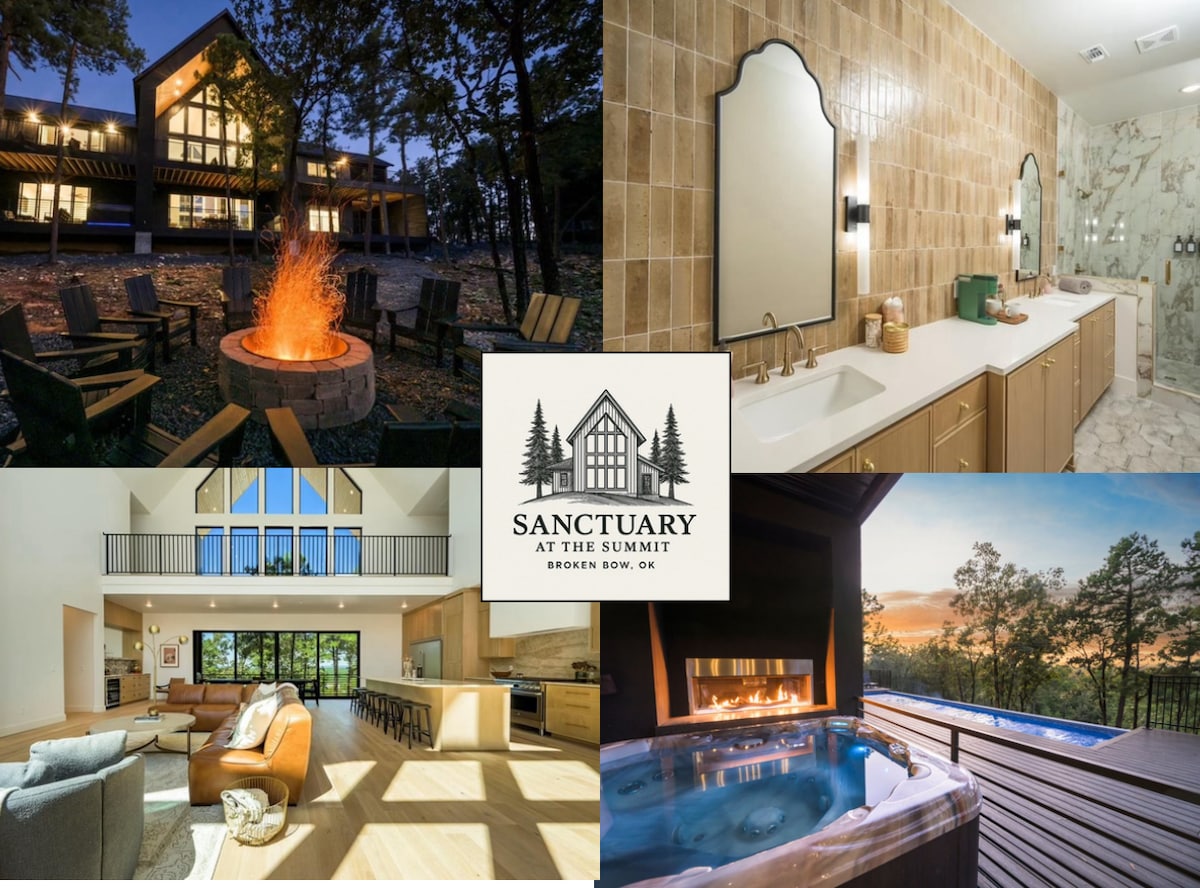 ✦ THE MALIBU ✦ • Breathtaking panoramic views from every window • Private swimming pool + hot tub under the stars • 4 king suites, each with spa bathroom & direct pool access - perfect for couples • Complete seclusion on 1.5 wooded acres with deer, wildlife & pine forest serenity • Chef's kitchen, outdoor firepit & covered BBQ deck for effortless entertaining • 10 mins to Hochatown yet worlds away from the crowds • Impeccably maintained luxury villa - spotless & thoughtfully designed