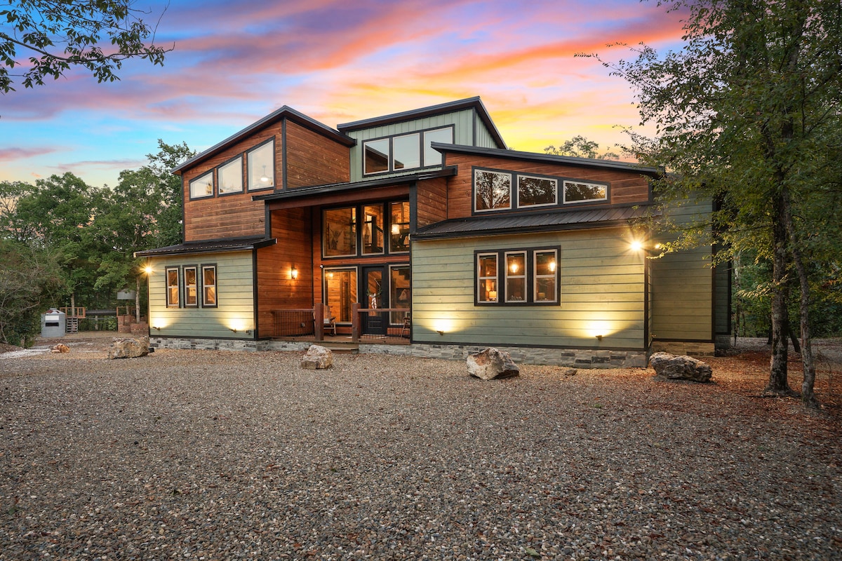Welcome to The Timber Haus, an elevated 4-bedroom retreat for up to 16 guests. Enjoy a private dual-temperature swim spa, lighted pickleball court, refined game lounge, designer furnishings, and curated outdoor living with two fire features and turf play lawns. Thoughtfully styled interiors, a chef’s kitchen, and soaring timber architecture create a polished yet cozy escape minutes from Broken Bow Lake and Hochatown dining. Seasonal rates may apply for select dates.