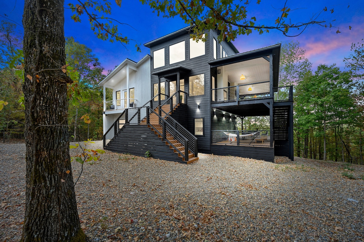 Welcome to Walkin' After Midnight! Nestled on a 2 acre lot with a flowing creek and expansive deck, Walkin' After Midnight is a stunning, chic, modern and rustic cabin. Privately owned and operated, Walkin' After Midnight will sleep 15! It is located on a cul-de-sac street with 80' pine trees and a large circular driveway to pull your boat. You'll love the 1600sf deck w/ built in grill, bev fridge & outdoor games. Walkin' After Midnight is just minutes away from all that Hochatown has to offer.