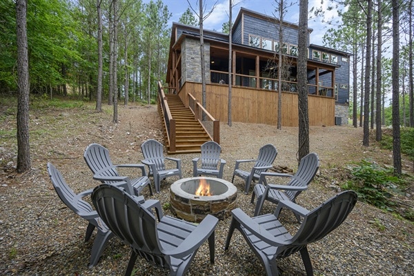 Get ready for a one-of-a-kind retreat in this spacious, romantic cabin nestled on three private, wooded acres in Hochatown, just a mile from local attractions and within walking distance of putt-putt and the Maze. Enjoy your own on-site disc golf course and game room, with room to sleep up to 13 guests. Unwind in the built-in 8-person Jacuzzi overlooking the forest, fire up the grill on the huge back deck, and gather around the oversized iron fire pit to make lasting memories at Wild Symphony!