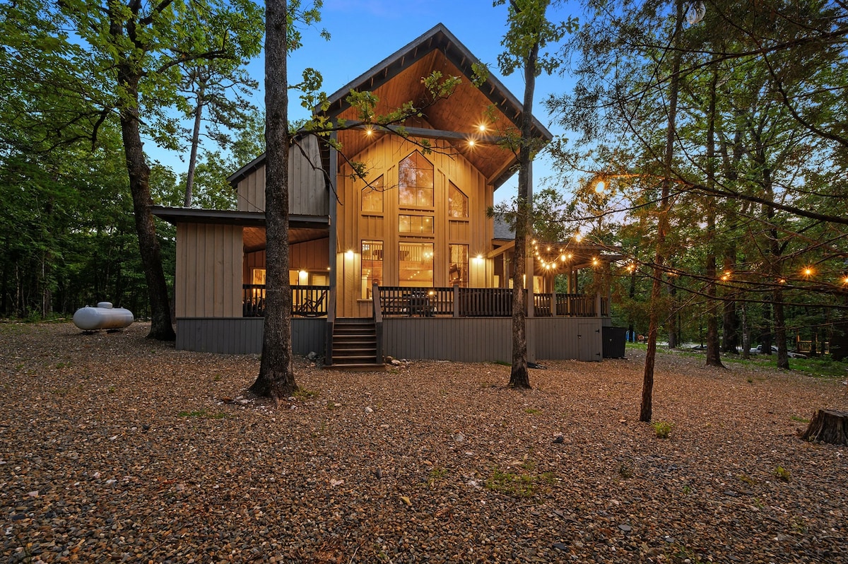Escape to Starry Escape, a luxurious cabin nestled in the pines with stunning views. ☀️ Spacious wrap‑around deck with serene forest views 🍖 Built‑in outdoor grill ♨️ Relaxing hot tub nestled among the trees 🔥 Cozy outdoor fireplace and fire pit perfect for gathering 📍 3‑minute drive to local shops and restaurants ✭ "A great stay for families. Lots of space for children and peaceful mornings watching deers with a cup of coffee..."