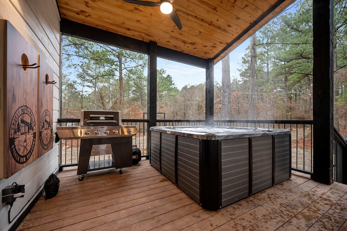 Discover the luxurious Smores and Snores Cabin, a modern farmhouse retreat in Broken Bow. Unwind on the wrap-around deck with a hot tub under the stars, or cozy up by the gas fireplace inside. The spa-like bathroom with a soaker tub and walk-in shower offers ultimate relaxation. Perfectly located near Broken Bow Lake, Beavers Bend State Park, and local dining, wineries, and shops, this cabin is your gateway to a memorable escape.