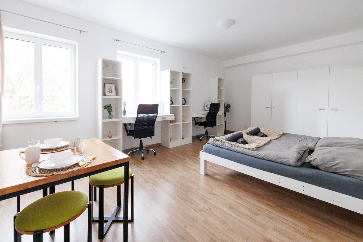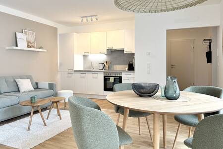 Willkommen in unserem Studio im Zentrum von Wiener Neustadt, nur wenige Gehminuten entfernt vom Dom, der charmanten Altstadt, dem Landesklinikum und dem City Campus der Fachhochschule. Die 50m² große Unterkunft bietet einen Balkon, der zum ruhigen Innenhof ausgerichtet ist, die stilvolle Einrichtung und der selbständige Check-in macht deinen Aufenthalt besonders angenehm. Das Studio ist ideal für 2 Personen, eine hochwertige Ausziehcouch (2m x 1,4m) bietet jedoch auch Platz für bis zu 4 Gäste.