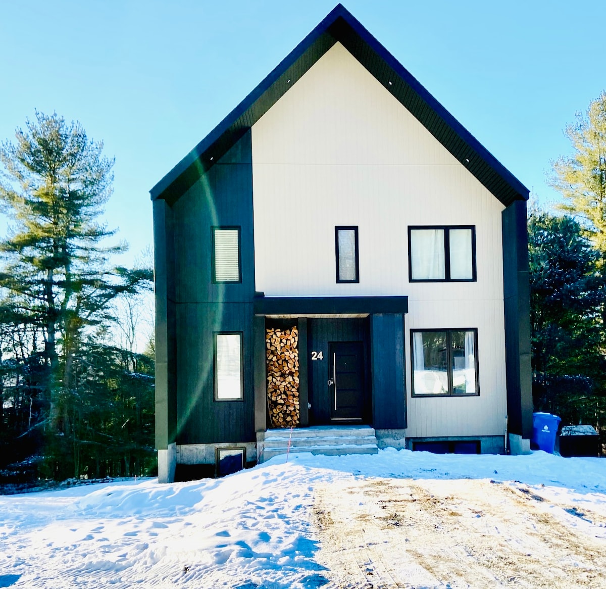 This newly built house is located on our 90 acre property. It is surrounded by an orchard, a vineyard and forest. The quaint and natural setting is perfect for couples, solo travellers or families. Cross country skiing, running and hiking can be practiced on the property. Bromont and Sutton downhill ski slopes are a 35 minutes drive away. Jay Peak, Vermont is 1h15 away by car. The surrounding country roads provide for wonderful bike rides.