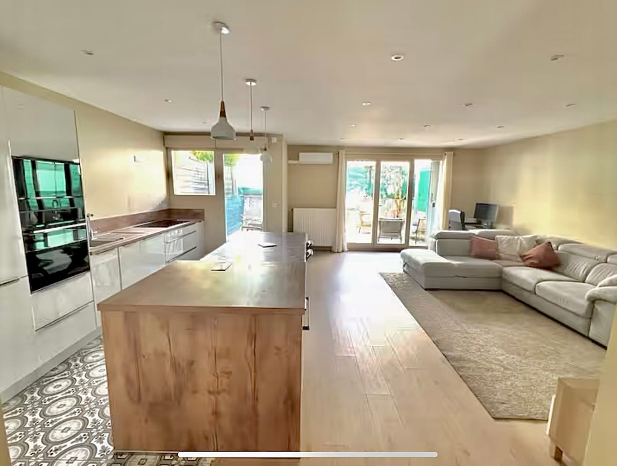 Discover this beautiful 250m² cozy/contemporary home, set in a peaceful, green garden in Écully, just 10 minutes from Lyon. Perfect for family, business, or friendly stays, it offers a calm and comfortable setting. Each bedroom is like a hotel room (with a private bathroom, TV, and toilet). To preserve the tranquility of the neighborhood, parties and events are not allowed. Enjoy a relaxing stay in a quiet and leafy environment.