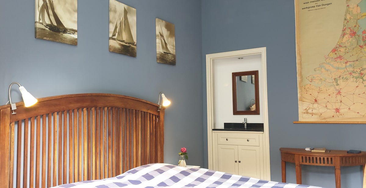 Zeer ruime, lichte kamer in een authentieke woonboerderij aan de voet van de Lochemse berg. De kamer biedt aan twee kanten weids uitzicht over het coulissenlandschap van de Achterhoek. Met een eigen opgang en een eigen ruime badkamer met ligbad naast uw kamer. Het ontbijt breng ik op de tijd die u wenst. Ideale plek voor natuurliefhebbers en rustzoekers.