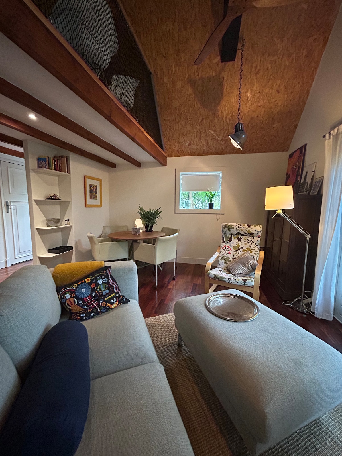 Ontspan en kom tot rust in deze knusse, charmante ruimte. Vanuit ons prachtig tuurplekje in de Achterhoek (van ruim 40m2) kijk je uit op de natuur, met zicht op het bos. De hele dag hoor en zie je veel vogels. Je slaapt op een knusse vide, waar je met een stevige trap naartoe kunt komen. Overige faciliteiten: je hebt een eigen ingang, een werk/ schrijfplekje (op hoogte verstelbaar), een eigen tuintje met terras (incl bbq). Luister muziek via bluetooth of platenspeler en tuur om je heen...