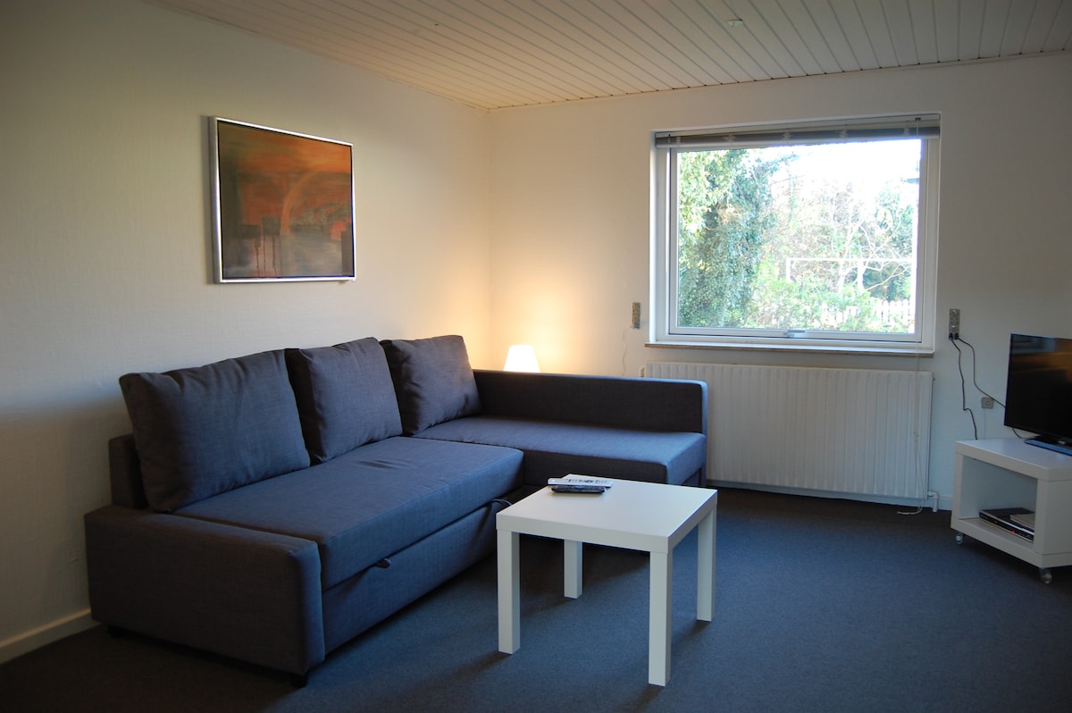 Very clean nice little apartment with its own entrance. Sunny patio. In a nice quiet safe neighborhood. Parking by the front door. Ideal for visiting Copenhagen. Flexible check in. Key box. 2 bicycles for free. Bedroom with 2 single beds or as double. Kitchen/living room with kitchen facilities. Table and two chairs and couch. Walk distance to Greve train station train to Copenhagen 25 min. Easy accest to the Airport 25 min by car (45 min by public transportation). Free Wi-Fi. TV. Linned