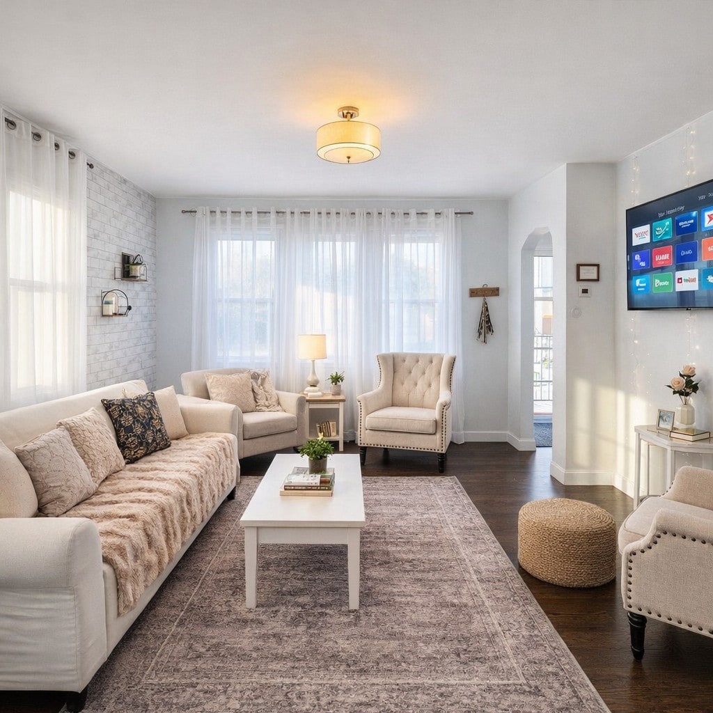 Escape to Big City Haven-NY, Stylish & Serene 2-bedroom retreat in Yonkers—short train ride to NYC! Designed for comfort & convenience, featuring private outdoor porch w/fire pit, sleep up to 7. We’ve got you covered with coffee, tea, spare chargers, luxurious Egyptian cotton sheets and more- find everything for relaxation & easy city access. 2 Bedrooms, king bed Private Back Porch + Fire Pit Full Kitchen & Bath Fast WiFi & Work-Friendly Easy NYC Access | Walk to pubs & dining