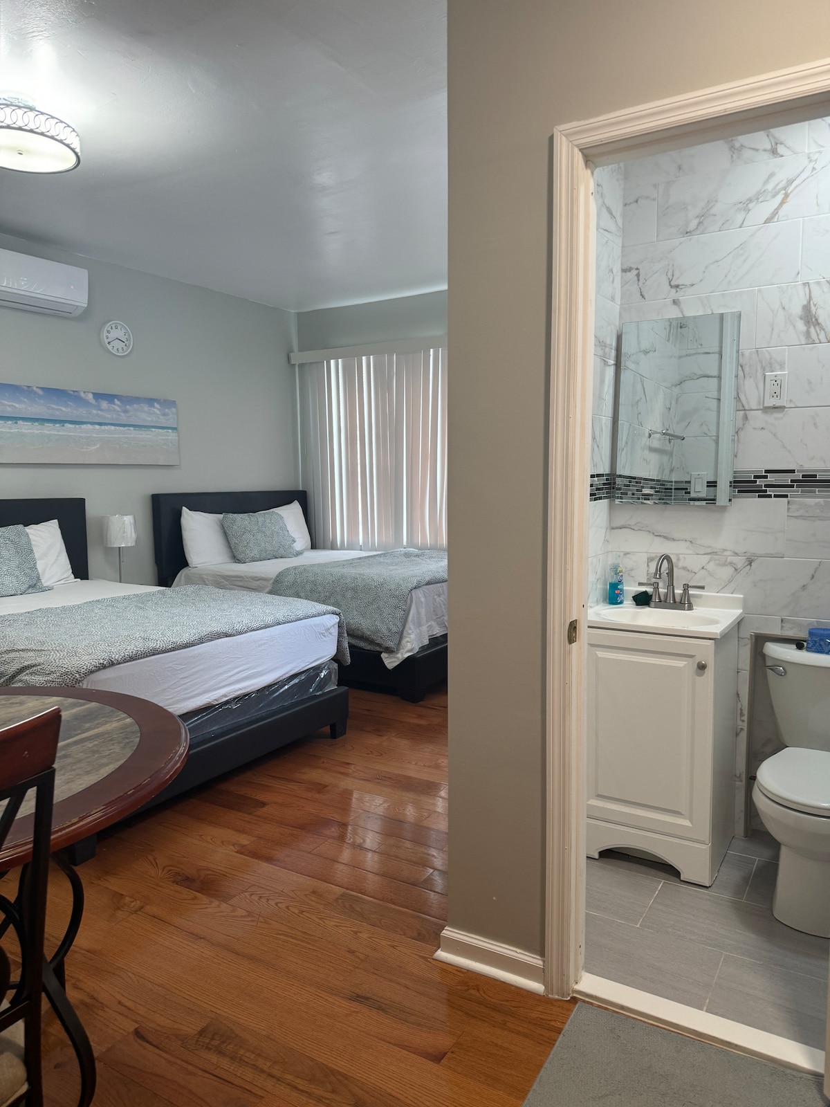 Your perfect private retreat designed for comfort & relaxation. Ideal for singles, couples, or business travelers. Enjoy Netflix & Amazon Prime unwind in the spa-inspired shower. Note: There’s a charming low ceiling & an open-concept bathroom that flows into the bedroom. Located 10 minutes from Cross County & Ridge Hill Shopping Malls, easy public transit access to Manhattan. For stays of two nights or more, enjoy a complimentary bottle of wine 🍷 & beer 🍺 along with water, juice, & snacks.