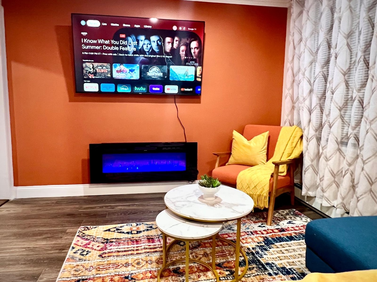 This is a private one-bedroom apartment perfect for a comfortable stay. The unit features a cozy bedroom and a pull-out sofa in the living room, allowing the space to accommodate up to four guests. Enjoy the privacy of your own apartment while being just minutes from New York City, with easy access to transportation, dining, and local attractions. Parking: Street parking is available. Please do not park in the driveway.