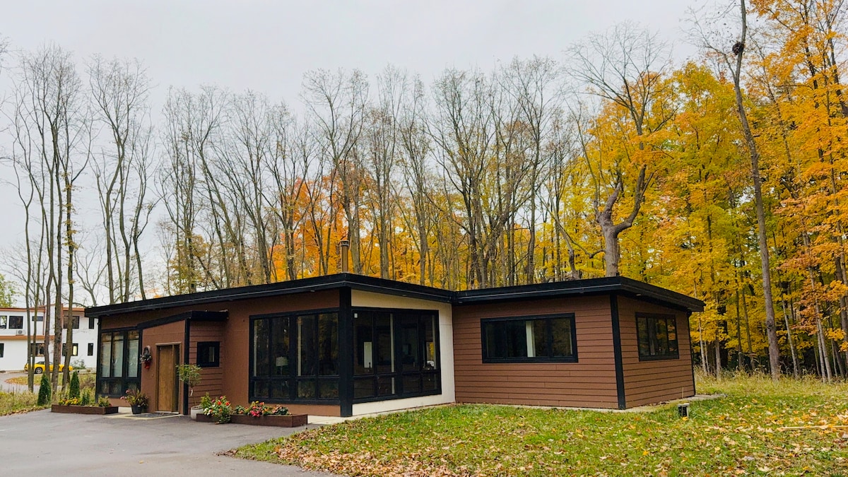 HEATED POOL MAY-SEPT FOR ADDITIONAL CHRG. Cozy designer custom built guest house nestled amongst a 10 acre hobby farm. come for a relaxing getaway. This home is an artistic gem! Boasting an open concept, with a queen bed on main level and twin mattress underneath , a full kitchen, cozy living area, wood burning fireplace. The loft has extra sleeping with a double bed and twin bed.Custom designed. Great location winter and summer, enjoy snowmobiling trails and skiing near by or beaches & hiking