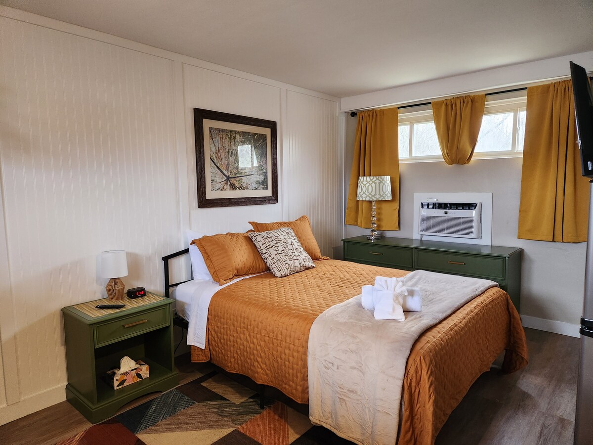 Step into the charm of a 1950s-built motel. Old motel charm with an updated interior face lift! The Country Inn Motel offers fully renovated kitchenette rooms with fresh decor, comfy beds, newly tiled showers, plank floors, and updated fixtures. New rooms feature apartment size fridge/freezer, microwave, and toaster oven/air-fryer combo. Relax on our quiet 3-acre country property, just minutes from restaurants, shopping, and local attractions. Perfect for a short getaway or extended stay.