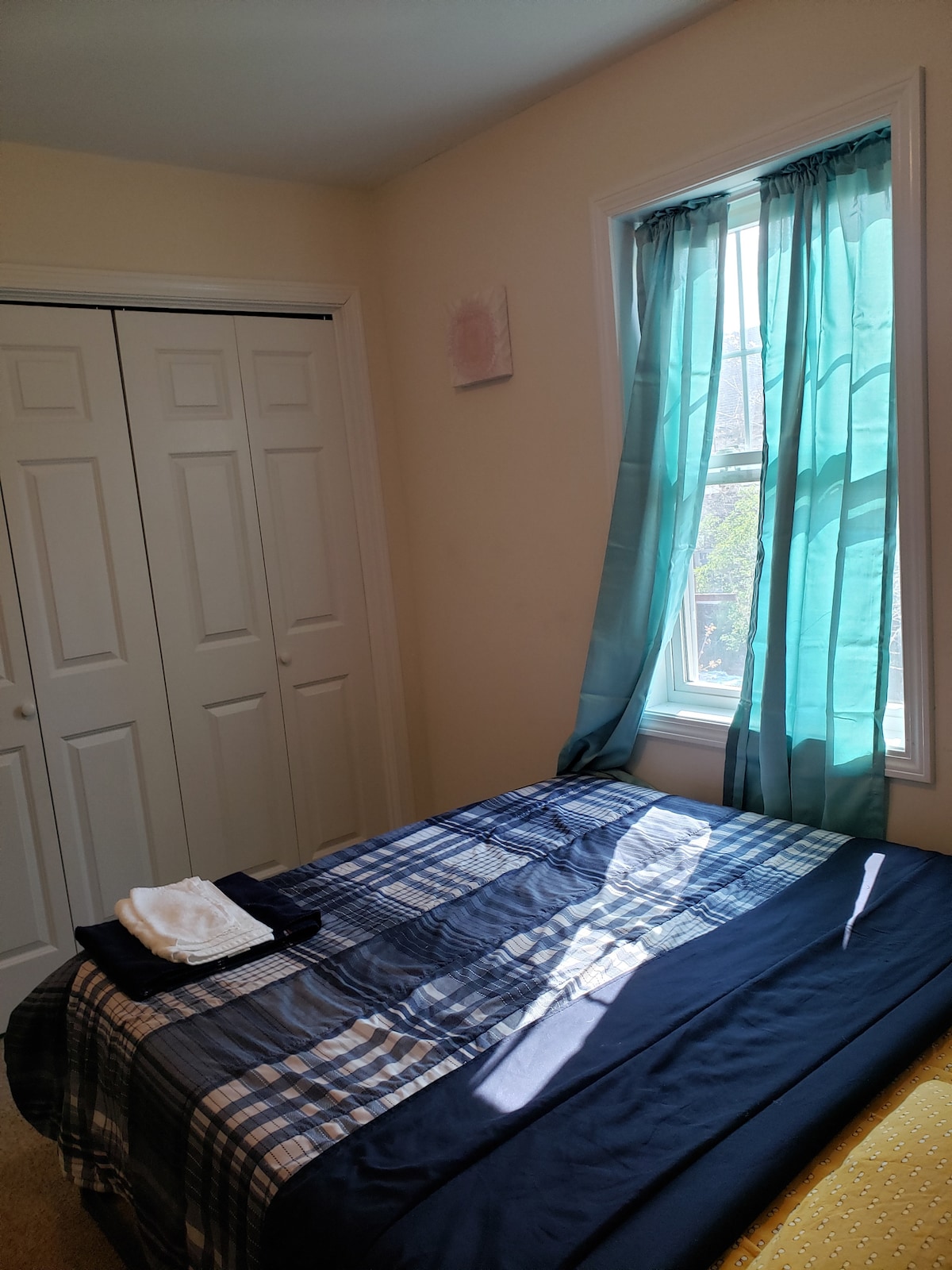 布里奇波特医院旁边的3卧联排别墅中的一间舒适的卧室