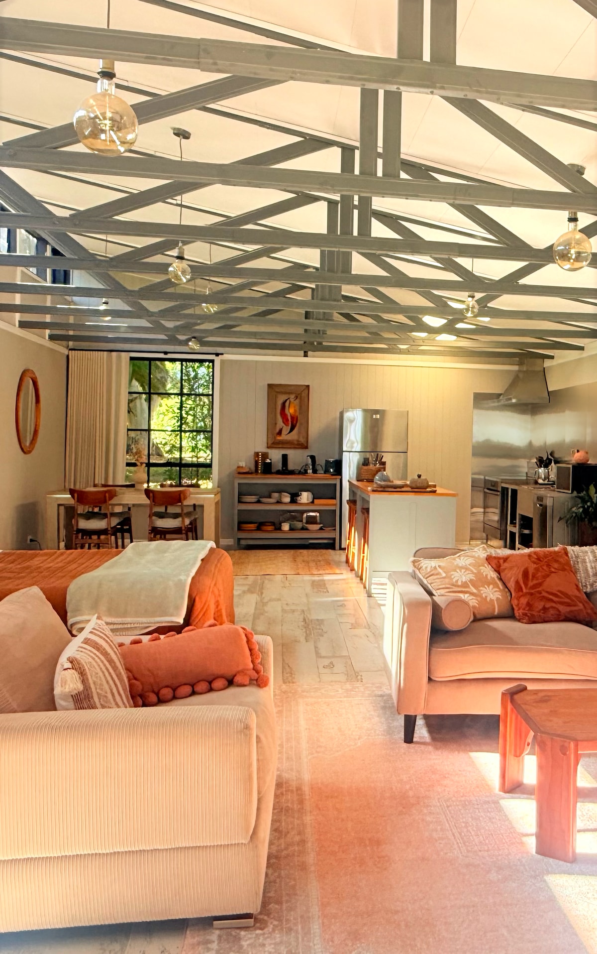45 minutes from the CBD, Palm Pavilion offers a boutique escape for connecting with loved ones or working in peace. This award-winning, multi-purpose container house is built on the edge of Ku-ring-gai Chase National Park, with a luxury feel and mindful architecture that centers on sustainability, seclusion and tranquility. Offering floor-to-ceiling rainforest views and a full suite of amenities, Palm Pavilion is an oasis for cutting out noise and sharing what matters.