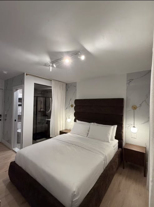 Experience modern luxury in this stunning, sunlit 1BR luxury bath suite in Greenpoint. Enjoy smart-home features, a sleek kitchen with stainless-steel appliances, and an 80″ Smart TV. Relax in the bright bedroom with a plush queen bed and unwind in the spa-style bath with a rainfall shower. Free private parking, elevator access, and a prime Brooklyn location near cafes, parks, and the subway make this stylish Greenpoint gem a perfect stay.