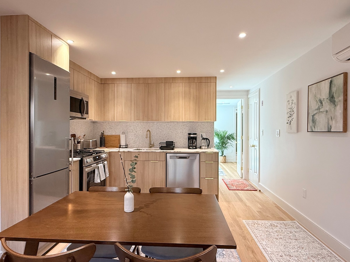 This newly renovated, 680 Sq ft space is an open concept, ground level of a duplex unit in a beautifully maintained Brownstone in Bed-Stuy! This gem is only steps away from the best cafes, restaurants, and bars that Brooklyn has to offer Whether you are in town for an event at the Barclay's Center, a Broadway show, business, or to simply check out the Brooklyn vibes- public transportation is located just a few blocks away, with arrival dwntwn Bk in 15 min and Manhattan in 20 min!