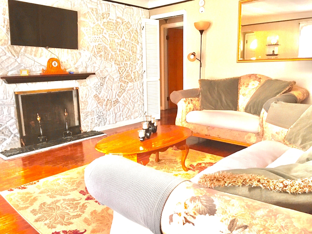 Renovated in 2021, this home's unique industrial touches add to its modern look. The home includes 3 bedrooms, featuring king, queen, and full size beds. There is a futon in the basement and a living room couch that can accommodate two additional people. The home is spacious, offering two areas for people to lounge, one on the first floor and the other in the basement. The basement includes a television, "bar" area, and a workstation.