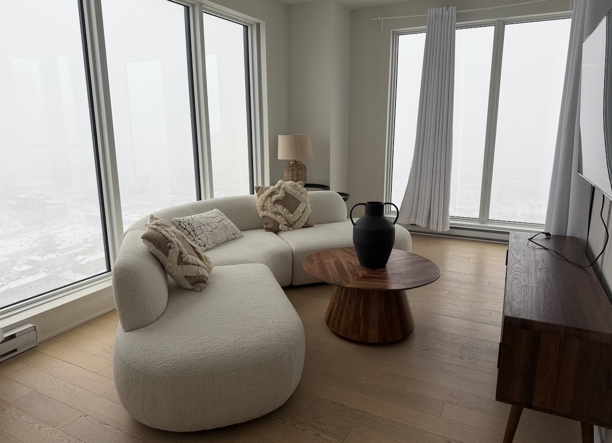 Enjoy your stay in the heart of the city ! Brand new TDC 2 downtown luxury with direct Bell Center access! Revel in comfort in our fully furnished and equipped one-bedroom condo with own private balcony! Your stay includes access to a sauna, pool, gym, skylounge, gaming room, lounge, and terrace with multiple barbecues. Free underground parking, with the subway just minutes away. Without stepping outside, the city is yours to explore. Plus, unwind with complimentary Netflix for the perfect stay