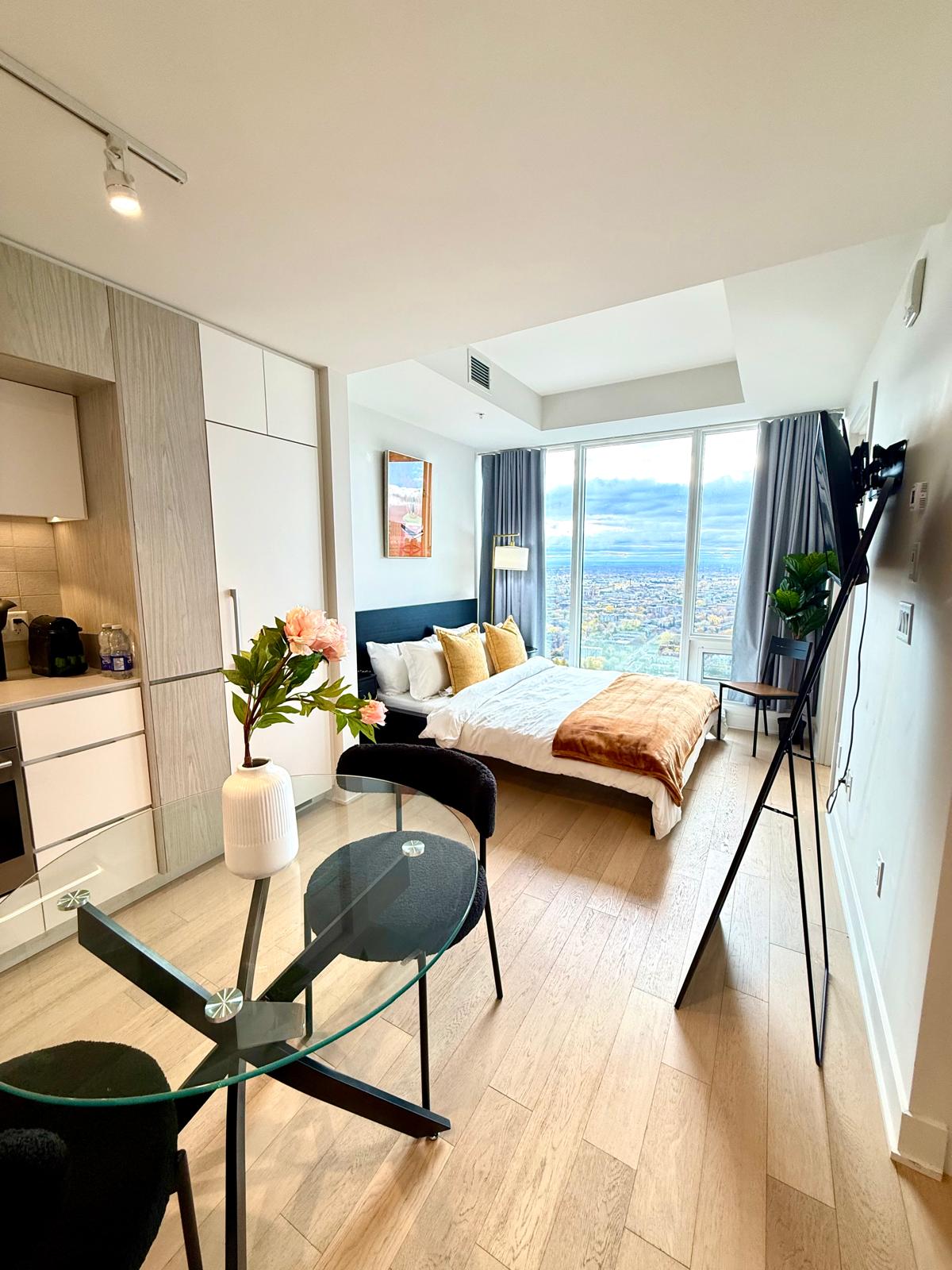 Enjoy your stay in the heart of the city ! Brand new TDC 2 downtown luxury with direct Bell Center access! Revel in comfort in our fully furnished and equipped one-bedroom condo with own private balcony! Your stay includes access to a sauna, pool, gym, skylounge, gaming room, lounge, and terrace with multiple barbecues. Free underground parking, with the subway just minutes away. Without stepping outside, the city is yours to explore. Plus, unwind with complimentary Netflix for the perfect stay