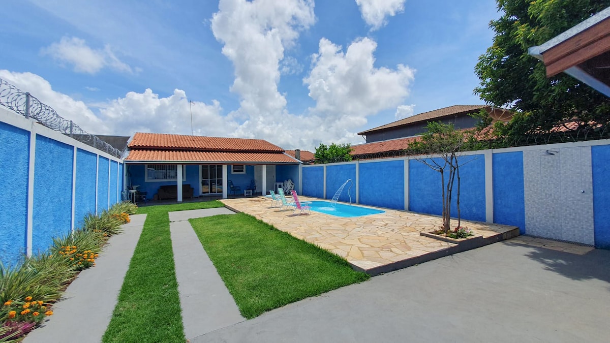Casa confortável toda climatizada perfeita para famílias e amigos que amam viajar e estar em local totalmente privado, localizada a 5 minutos do centro da cidade e próxima a supermercados, bares, restaurantes, cafés e agência de turismo. São 3 suítes com ar-condicionado com enxoval de cama/banho. Sala de estar com TV Lavabo Cozinha com utensílios e roupa de mesa. Churrasqueira com utensílios e acessórios para churrasco. Piscina c/ ombrelone, espreguiçadeiras, mesa e cadeiras Não aceitamos PET