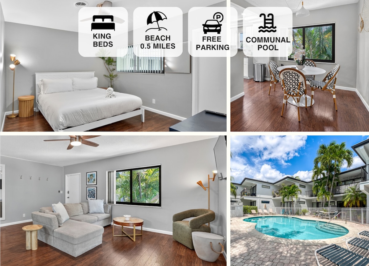 Immerse yourself in a unique blend of south Florida eclectic charm and modern comfort at our tropical retro-chic hotel in Fort Lauderdale. Perfect for groups and families, this eclectic retro styled haven offers an exceptional stay, complete with a fully furnished kitchen, living room, and cozy bedroom. Step outside to explore the bustling city or unwind by our pristine pool. Ideal for those craving a blend of relaxation and adventure, our apartment is your gateway to the best of South Florida.