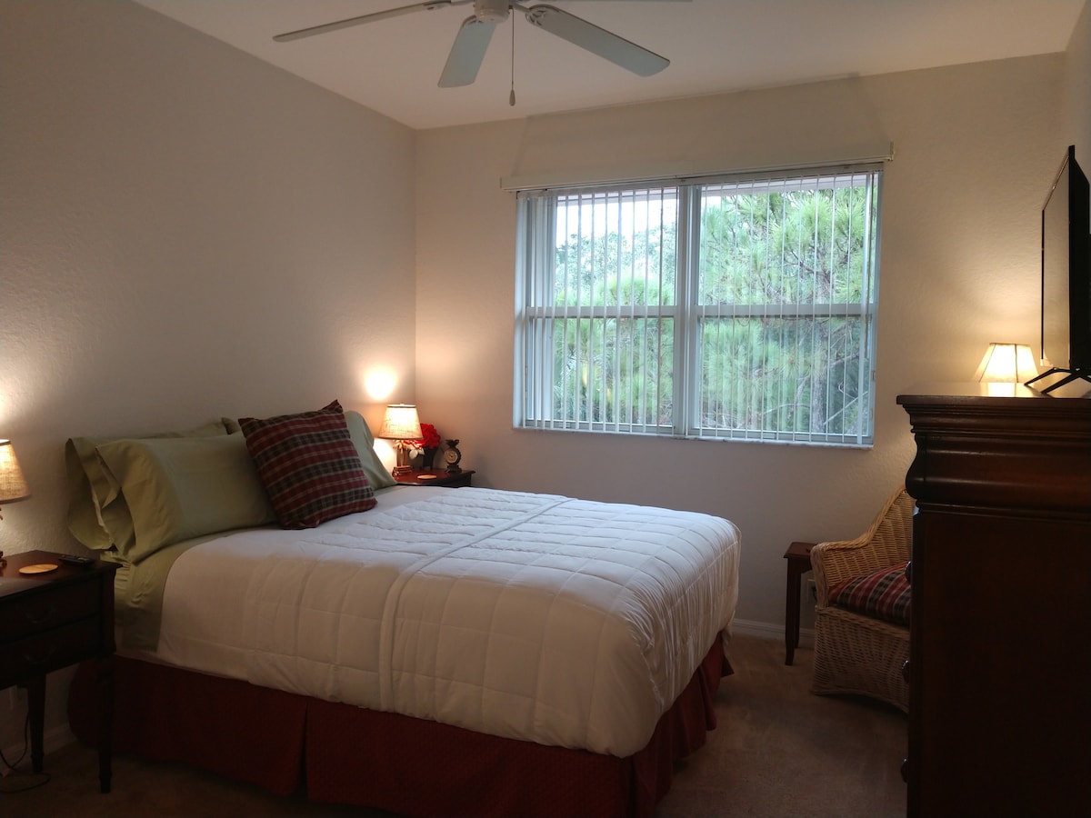 舒适的1卧室、热水浴缸、果岭、单元内洗衣房