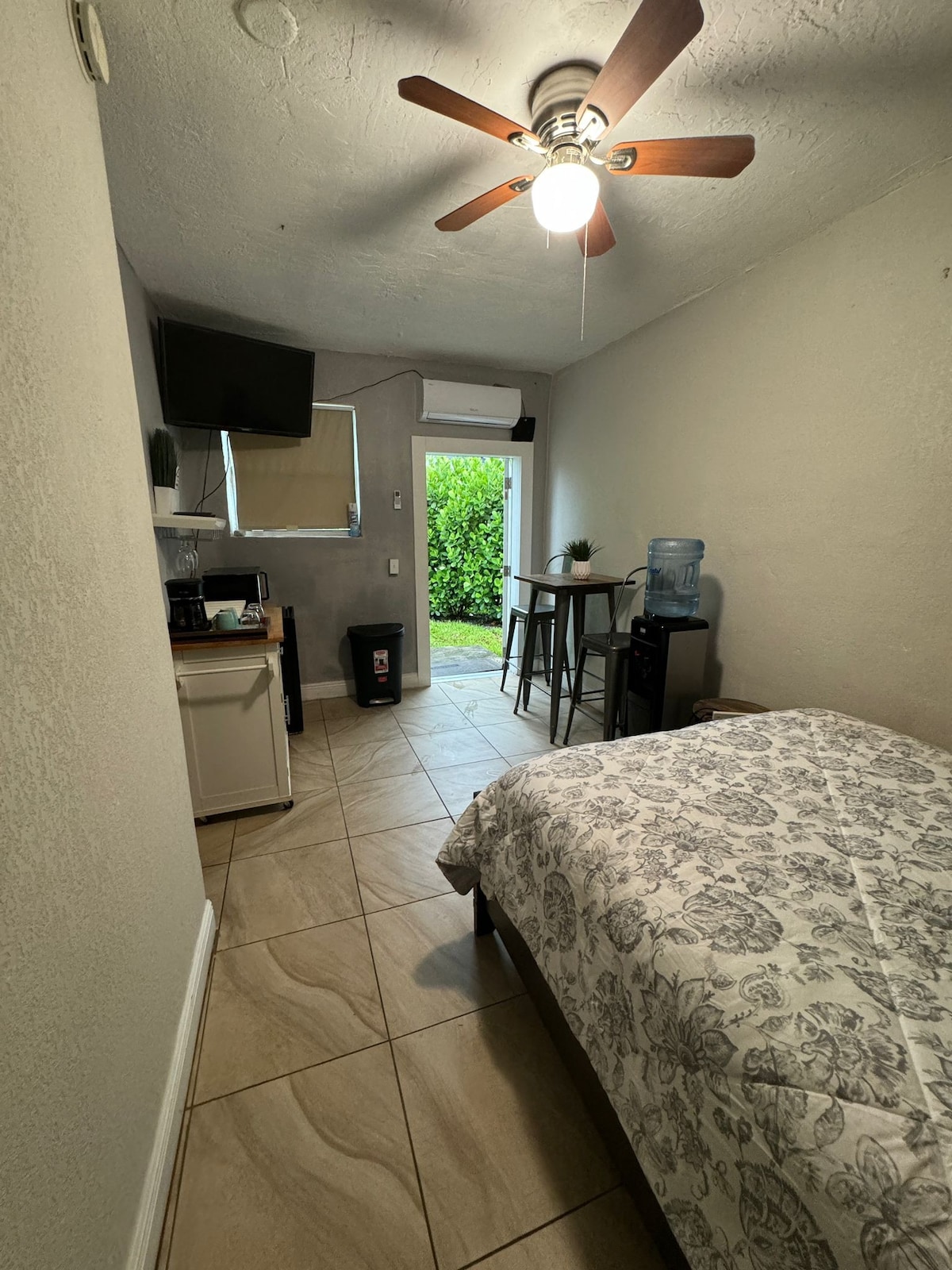 Beach block bungalow with a chip and putt. Great for couples, solo adventurers, business travelers and families (with kids). We do offer Length of stay discounts. All you need is your Bathing Suit...Welcome to Paradise!!! Located in a safe neighborhood, 1 block from the beach! This ground floor unit is situated in one of four smaller ground level units on the property. (no one above you). It has a king bed, sectional and a large living room. Fully furnished. with a chipping putt and tiki! 🏝