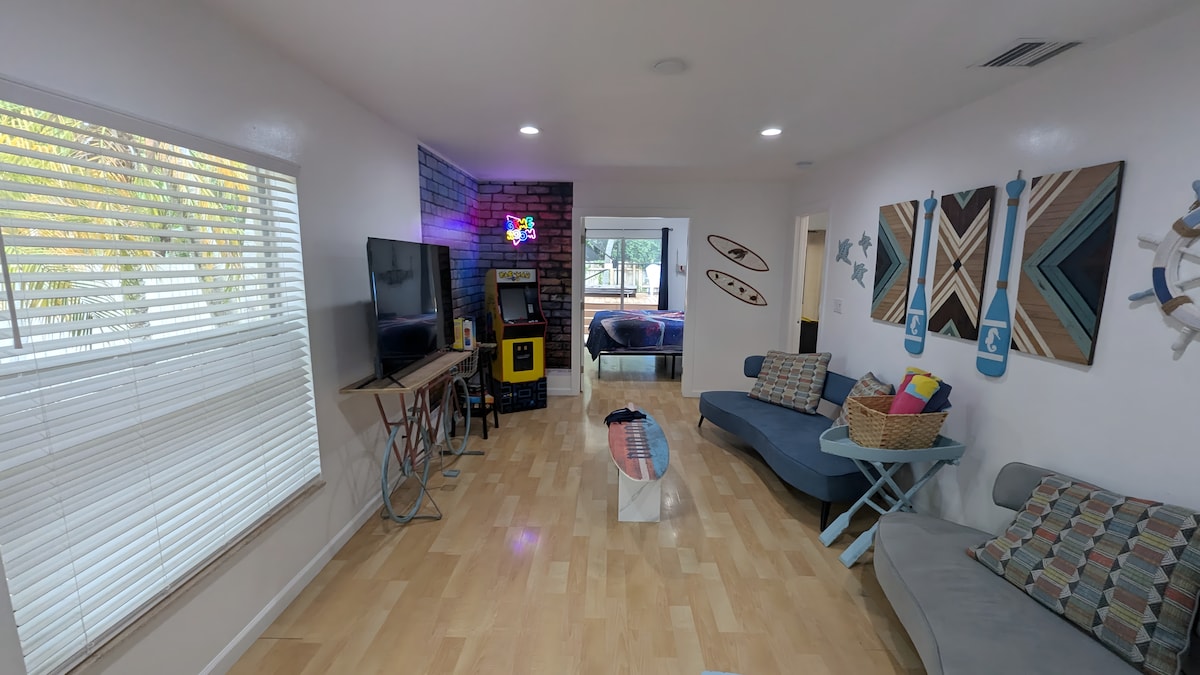 Spa area with jacuzzi, bicycles, close to the beach, Arcade pac man game, air fryer grill, high speed internet, Electric car charger, central air, parking, direct wifi access, washer and dryer. Luxury beach kit Start Wars themed room with moving space lights that children and adults will enjoy. TV in all rooms, And all the basic 5 star amenities.