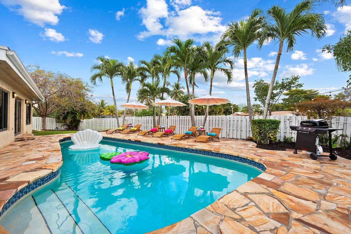 Beautiful home in Fort Lauderdale with the city and beach within 10min Uber/Lyft. You may not even need to leave as you will find your own piece of paradise in the backyard right in the middle of a wonderful city. Completely Private backyard and heater pool, grill, beach supplies including towels, shampoo/conditioner, stocked kitchen, and pack 'n play. No shared amenties. washer and dryer on site for guests. Approved City of Fort Lauderdale Vacation Rental, Certificate #170 1190