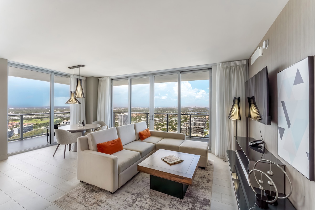 Stay in this 2 bedroom 2 bathroom condo at Hyde Beach House. The most desirable north east corner unit with striking views of the ocean, intracoastal and city. This luxury condo features modern furnishings, high end appliances and quality beds. Cable TV, 100+ Mbps WIFI, Alexa and Netflix ready. Just steps from the ocean and minutes from golf and country clubs exciting racetracks and casinos, fun-filled parks and attractions, world-class shopping, great dining, entertainment, the arts, and more.