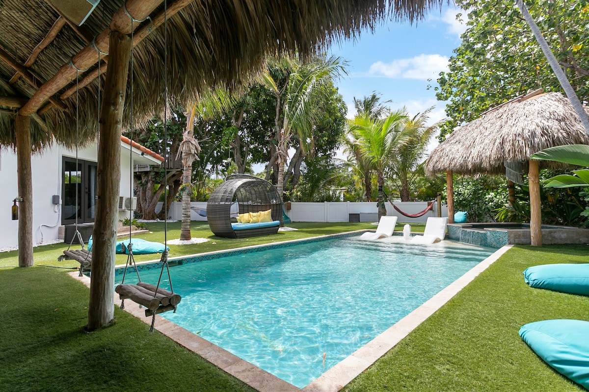 🚤Boat rentals & excursions 🏖️Short drive to beach 🏊 Heated Pool 🎮Games Room with Nin. Switch 🛌4 bdrms, 2 bths, sleeps 10 🧖Steam Spa 🌴Tropical yard 🛋️Relax on pool loungers or under the lanai ☕Well-equipped kitchen with Keurig coffee 🛋️Comfortable living areas 🍳Outdoor Kitchen 🎲Connect 4, beach/pool toys 📺Roku TVs 🍗BBQ & tiki bar 🧺Laundry 📍Near Pompano Beach, Fort Lauderdale, Boca Raton, and Miami 🏌️♂️Perfect for families, golf trips, girls' getaways