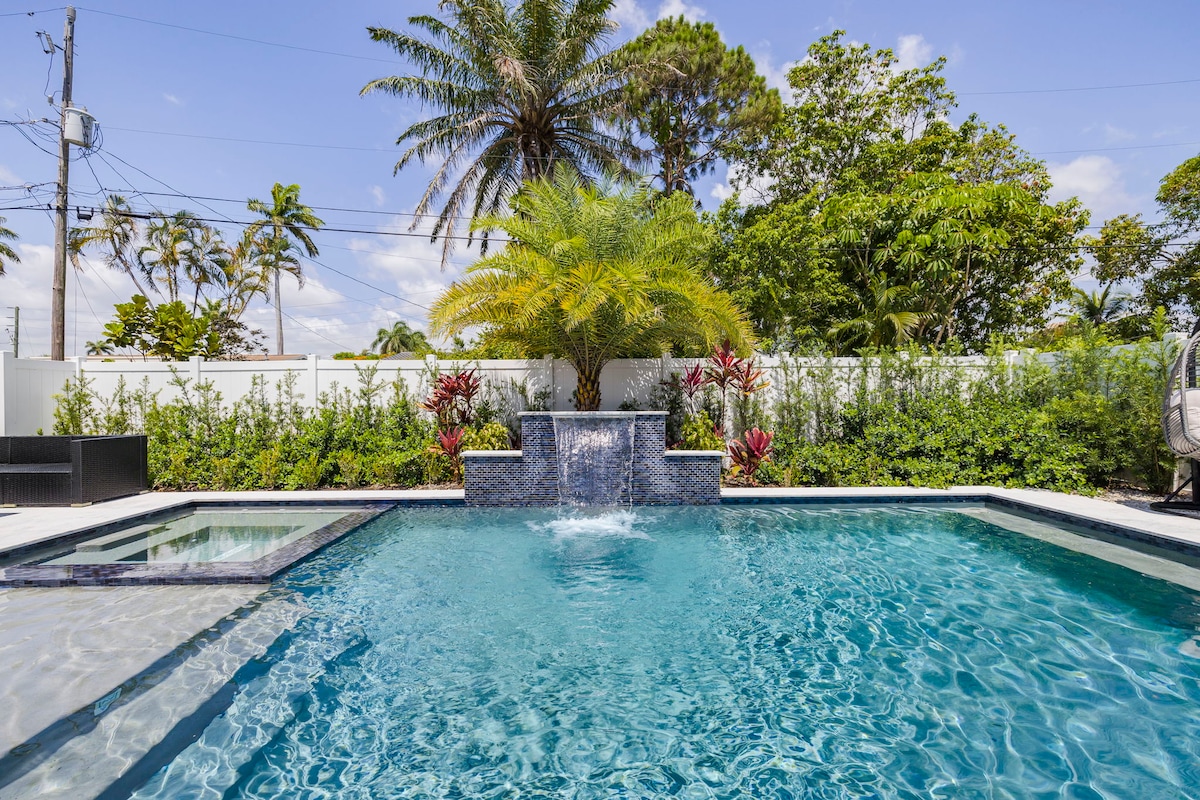 Stunning Villa in a quiet neighborhood surrounded by palm trees, featuring an open concept living space, 3 bedrooms, 2 bathrooms , fully equipped chef’s kitchen with top of the line appliances, indoor and outdoor covered dining and hang out area, office space, heated -pool, outdoor jacuzzi, BBQ grill and more..10 minutes away from the ocean, 15 min away from FLL Airport, close to most exciting spots in FLL. Publix, Starbucks, CVS only 5 mins away. We look forward to welcoming you!