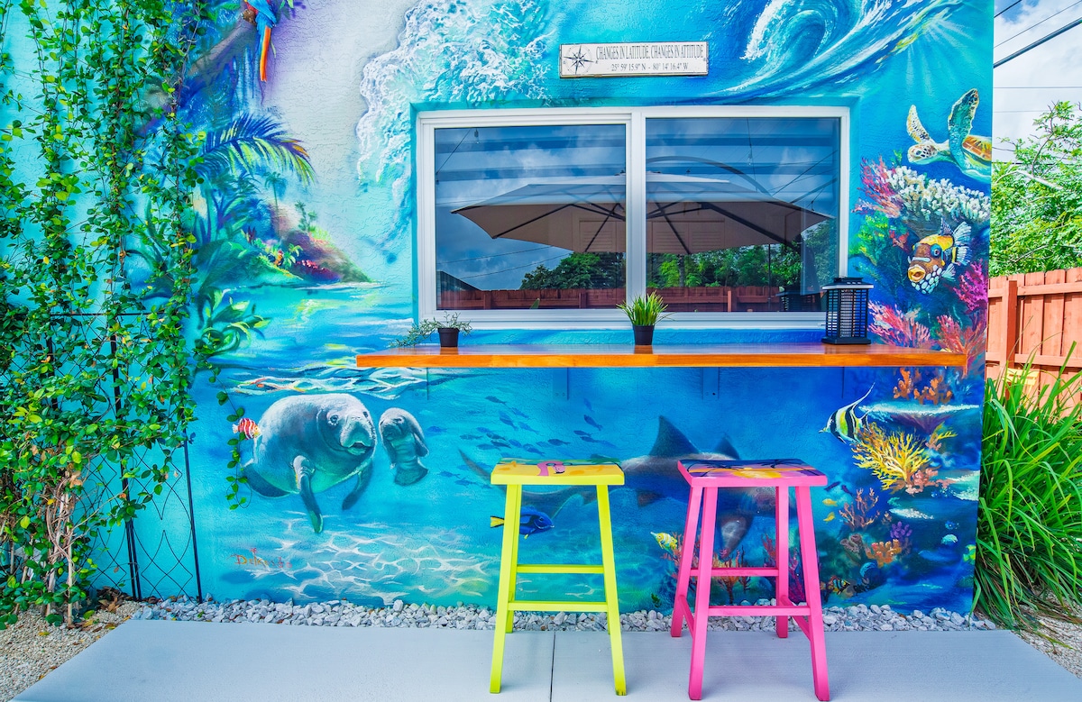 Today’s weather? 75 and sunny! So come grab your cooler on wheels and beach chair provided by us and head straight to the sand, just a quick walk from this Airbnb. It’s the perfect spot to take a break from reality and smell the salty sea air. Strong WiFi for plenty of binge watching and remote working in an interior boasting fun coastal decorations. Comfy wicker chairs on the porch to sip a glass of your favorite drink for a mental escape. Grill out with new found friends and gather in the tiki hut to share your saltwater adventures. Bring the fur babies, as we are a pet-friendly community. There is a tiki hut in the back of the property that can be used to chill out. The entire apartment is yours, along with access to the tiki hut in the back and the laundry area. Call or text me 24/7. Snorkel just offshore and swim with sea turtles and multi-colored reef fish. Surf, play volleyball, and build sandcastles. Stroll to the pier, with shops, clubs, and cafes all close. You can walk anywhere you need, even to a major grocery store. No need for a car. If you bring a car (or two), you get two free parking spaces. A coin-operated washer and dryer are available to guests along with free laundry pods and dryer sheets. Please be prepared with quarters to operate the machines. We are animal lovers, and so pets are welcome. Please see additional details within House Rules regarding pet deposits. Please make sure to accurately indicate the number of guests in your party, as per our House Rules.