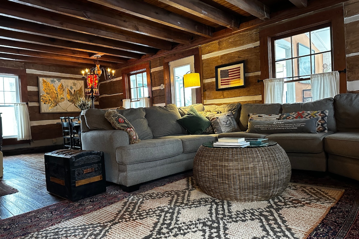 Step into cozy 1885 charm with an unforgettable view. Perched atop one of Brown County’s highest ridges, Abe’s Cabin blends historic character with modern comfort. Enjoy a jetted spa tub, seasonal gas fireplace, and a darling farm-style kitchen perfect for slow, simple meals. There's a king bed downstairs, and a queen in the loft. Relax on the front-porch rockers or take in the view from the back deck, an inviting escape for couples or small groups!