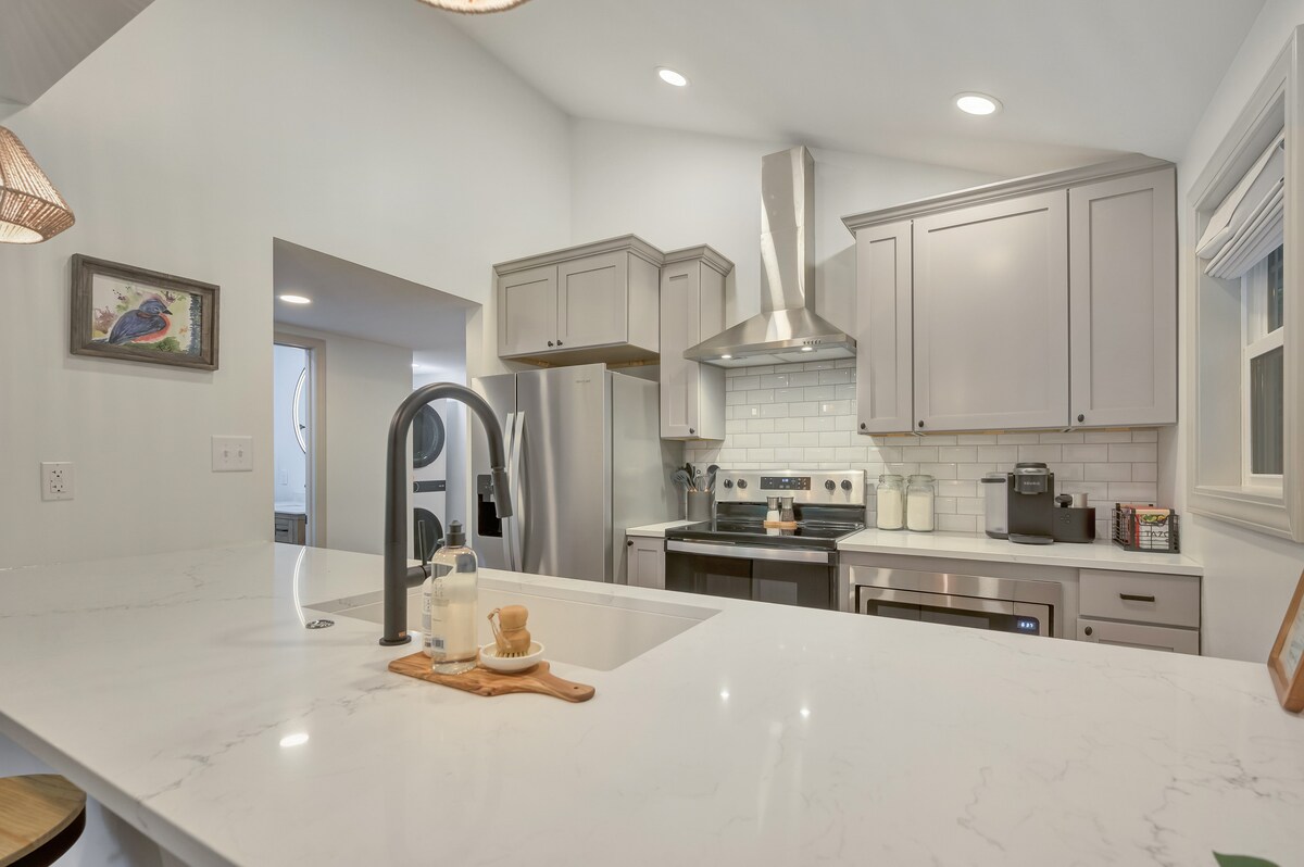Enjoy a stylish experience at this centrally-located home. Walking distance to all that Nashville has to offer. -6 beds (1 king, 2 queens, twin bunks, queen pullout) , 4 bedrooms, 3 FULL bathrooms -Master with en suite bathroom and heated floors -hot tub -large patio with grill and fire pit -indoor fireplace -game room with air hockey and arcade games -fully updated -free coffee -washer and dryer -on-site parking -free Wi-Fi -full streaming services on tvs -keyless entry -truly a must see!