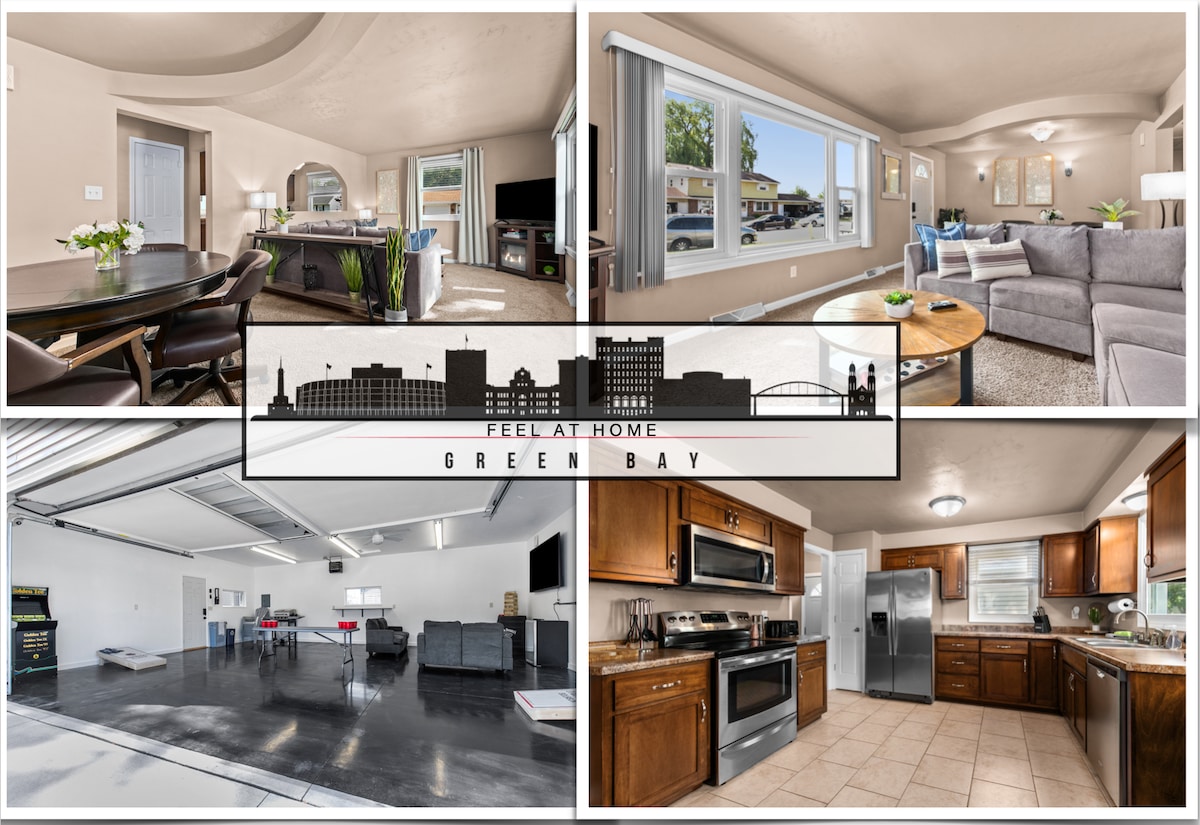 Stadium District location within walking distance to Iconic Lambeau Field, Resch Center, Resch Expo Center, 24 Hour Convenience store (Kwik Trip) and the entertainment district. Entire home with three bedrooms, kitchen & dining areas, plus large heated and screened garage for tailgating and more. On site free parking, Wi-Fi, Equipped Kitchen and Dining, Free Washer and Dryer.