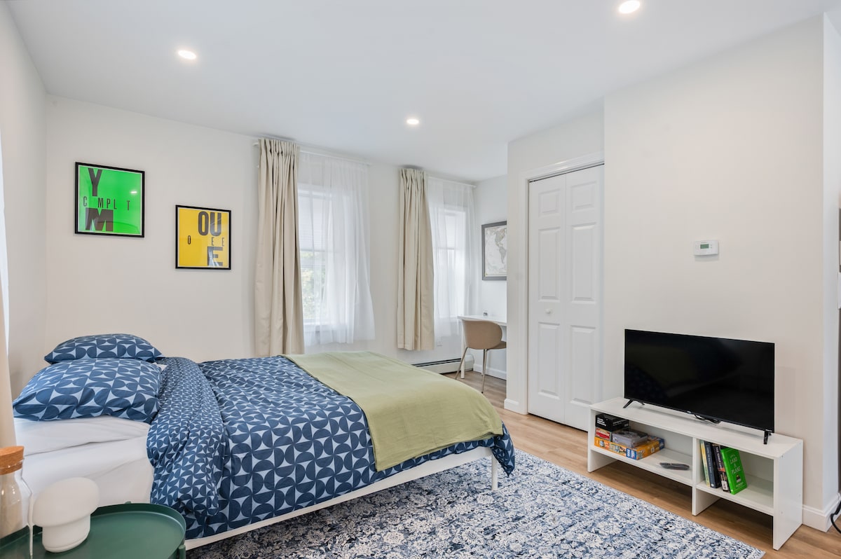 Heart of historic College Hill in a beautifully renovated 1st-floor apartment, just steps from Thayer Street and Wayland Square. Across from Brown University, this spacious unit features a fully equipped kitchen, walk-in shower with in-unit laundry, primary bedroom with workspace, and living room with original marble fireplace. Sleeps up to 6 with convertible furniture (queen sleeper sofa + 2 twin fold-out chairs). Just 1 mile from the train and 15 minutes from the airport.