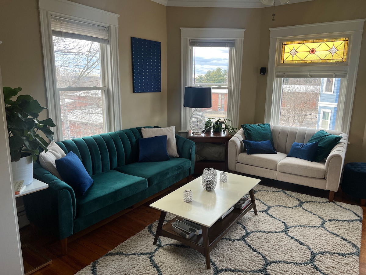 Sunny, inviting, 3rd floor walkup on East side of Providence. One block from Oak Bake Shop, Providence Bagel, Whole Foods; much more within one mile. Comfy queen bed + sofa bed, private bath, Apple TV. Great for long-term guests and weekend visitors. Backyard, grill, laundry available but shared with house. Potential basement storage for long-term stays. Ceilings are low in places, may not be comfortable for taller than 6'.
