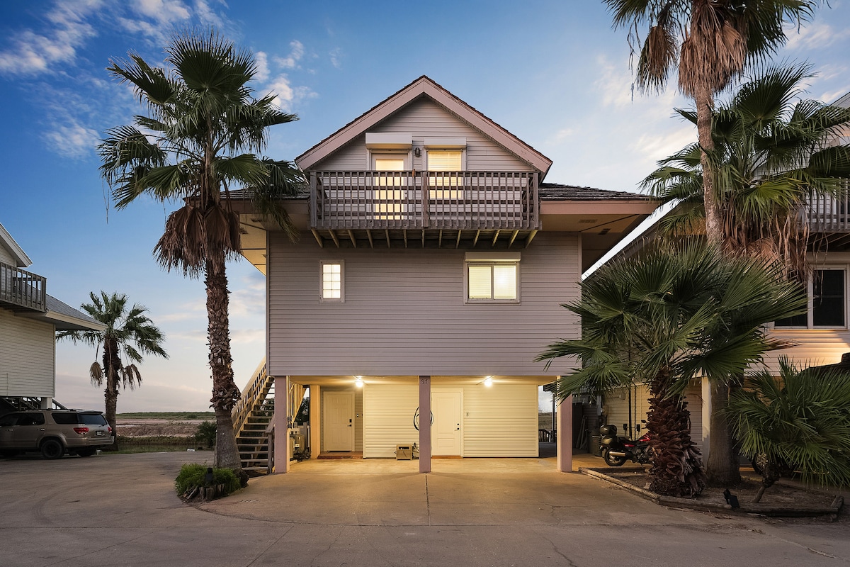 Be the FIRST to stay at an interior designer's custom home in Port Isabel! Ideal for families and groups, this stunning 2-story duplex has everything: HEATED pool, outdoor lounge and dining, BBQ, space-themed game room, 4 huge TVs, free EV charging, king-size ensuite and sitting room, full size washer/dryer, and custom workstation + bunk room. Located 10 min from South Padre Island, you can experience the best of both worlds: the tranquility of the bay and the excitement of the beach.