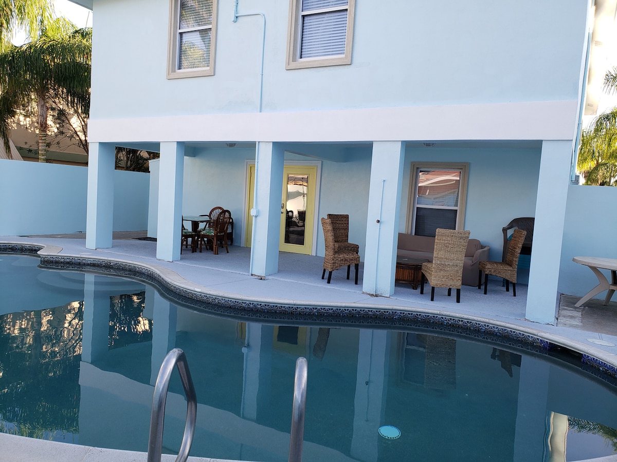 Beautiful beach house LOWER UNIT with private pool and parking. Soft water system to entire home and alkaline drinking water filtration. Located walking distance from the beach and from the center attractions of South Padre Island. (Louie's Backyard, Tequila Sunset, Watersport/golf cart rentals, Conveniently located next to Blue Marlin supermarket. Great view of seasonal fireworks .