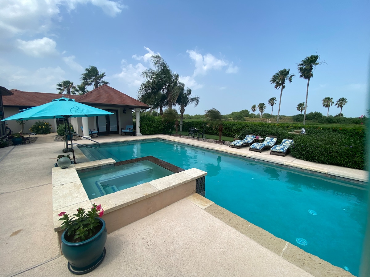 Enjoy the sun and relaxation at this beautiful casita located on the 8th hole of South Padre Island Golf Course. Private crystal clear pool and hot tub just steps from your Casita! Perfect for Golfers, birders, sun lovers and SpaceX launches! Very quiet, relaxing, location 20 minutes from the beautiful beaches of South Padre Island. A perfect couples retreat located behind a private home in the bayside town of Laguna Vista. Book now for your Spring / Summer vacations. Dates are filling up fast!