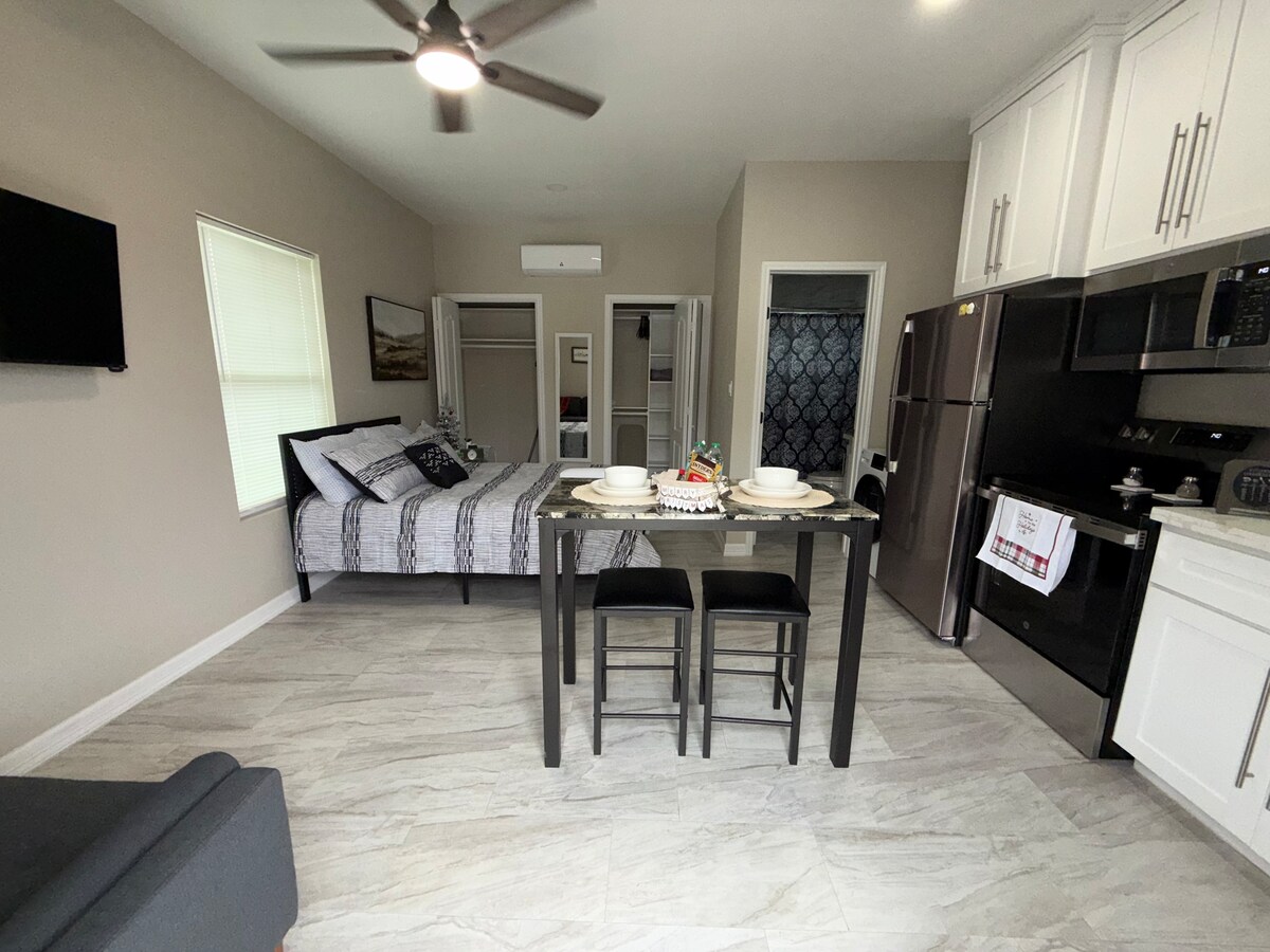 Modern Studio in the Heart of Brownsville. This stylish-comfortable studio is located in a safe quiet neighborhood. Relax in a clean open-concept studio designed with your comfort in mind. Whether you're in town for SpaceX launches, business travel, or weekend getaway, this studio has everything you need for a comfortable stay. Guests have full private access to studio and outdoor patio area. Perfect for couples, solo travelers, or business guests looking for a peaceful stay with modern comfort.