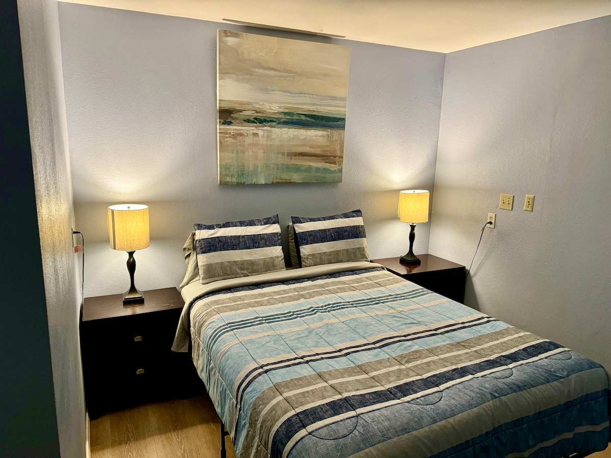 The Ideal Downstairs Suite: Combined hotel-quality comfort with all the amenities of home. Our Suite Highlights: Pet-Friendly: Your furry friends are welcome here! We know how important it is to travel with the whole family. Gourmet Kitchen: Cook like a chef in the sleek, fully equipped stainless steel kitchen with modern appliances. Spa-Like Bathroom: Rejuvenate in the luxurious, spacious walk-in shower. Restful Sleep: Two comfortable Queen Size beds Minutes away from beach, bay and bar!