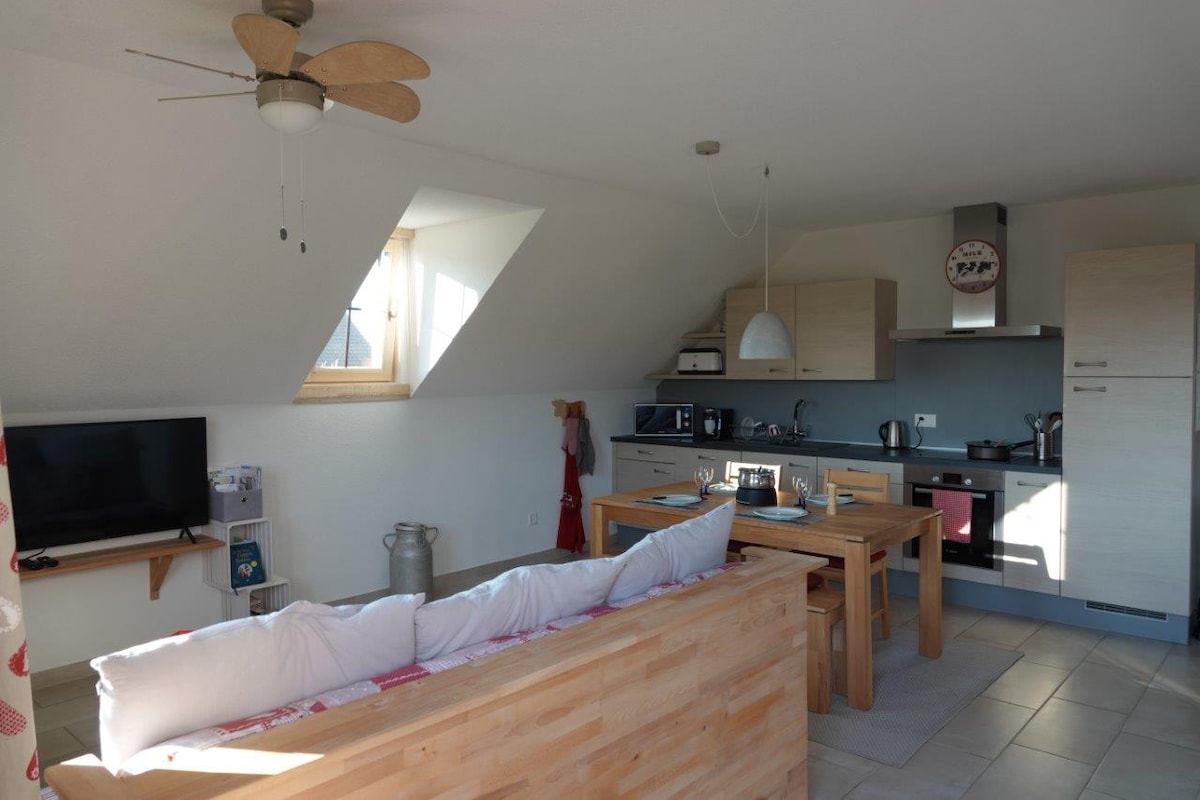 Bienvenue au Gîte La Grange, niché au cœur de la campagne fribourgeoise, à deux pas du lac de Neuchâtel. Vous profiterez ici d’un environnement paisible, entouré de nature, idéal pour se reposer et se ressourcer. Depuis les fenêtres, la vue s’ouvre sur les Alpes fribourgeoises, bercée par les cloches des vaches de la ferme voisine. ✨ Un cadre idéal pour une escapade en couple, le temps d’un week-end ou d’un séjour ressourçant. 👨👩👧 Parfait également pour les familles, jusqu’à 4 personnes