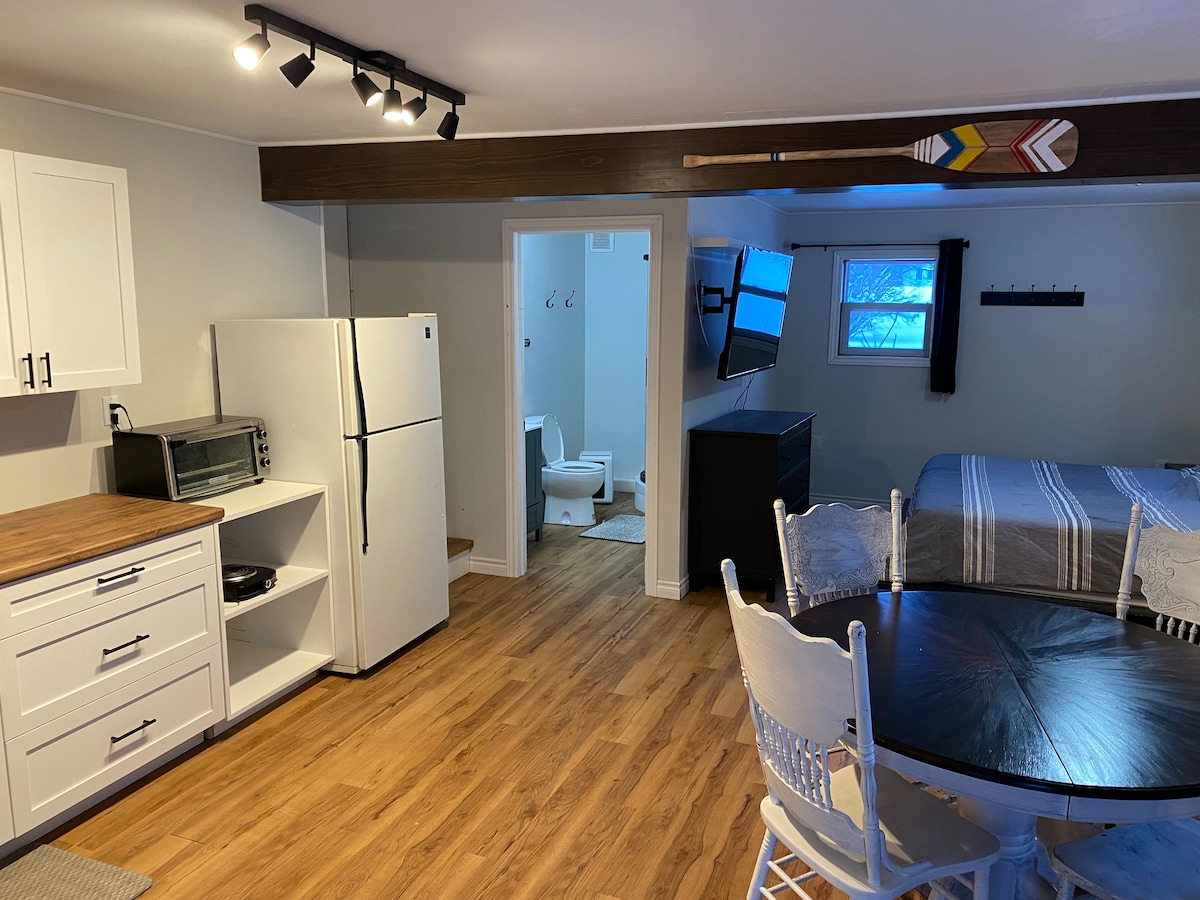 License: STR2024-025-250813 Welcome to our bright and clean one-bedroom suite ideal for singles, couples, or small families. Walking distance to the Bruce Trail, a short drive to parks, beaches, and lakes; and a good home base to explore the Bruce Peninsula and Tobermory. A comfortable queen size bed in the bedroom with a selection of bedding and pillows. Fully equipped kitchen, modern bathroom, full suite of TV streaming with high-speed internet. Residential area on the west side of town.