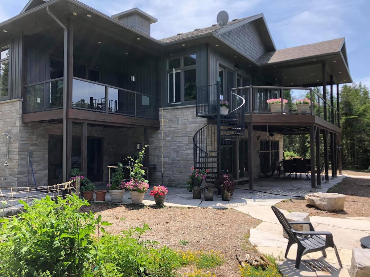 Welcome to our beautiful, spacious home nestled along the shores of Colpoy Bay, perfectly positioned between Wiarton and Owen Sound. Situated just 2.5 hours from the Greater Toronto Area, our retreat is the ideal escape for larger groups seeking relaxation, family bonding, or adventurous exploration in Grey Bruce. Our fully-equipped retreat offers year-round comfort. Explore nearby trails or relax by the lake, then gather around the fire pit to watch stunning sunsets. Book your getaway today!