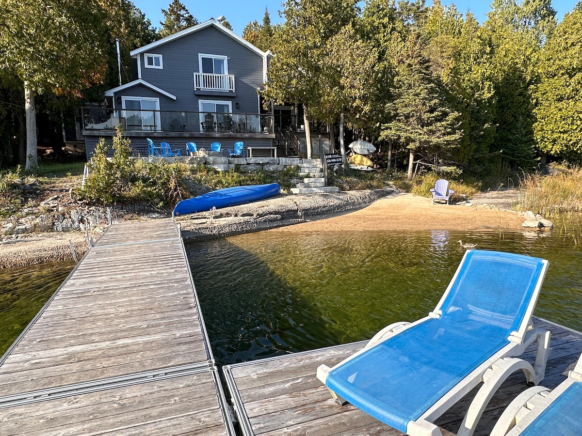 Our gorgeous newly decorated lakeside cottage property is located just 20 minutes from Tobermory & 10 minutes from the Bruce Peninsula National Park. It features 3 bedrooms + beds in basement/walk-out, sleeps 8-10 comfortably. Other features include: 2 bathrooms - heated floors, 600sq deck w/ BBQ overlooking Lake Huron, Outdoor Shower. Breathtaking views. **Please note** - No outdoor noise past 11pm; - No parties or excessive noise at any time.